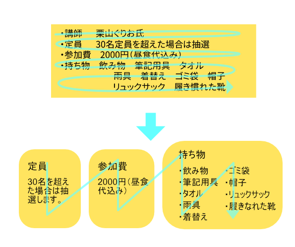 箇条書きをひとつずつ小見出しにしてまとめると、読みやすくなります。