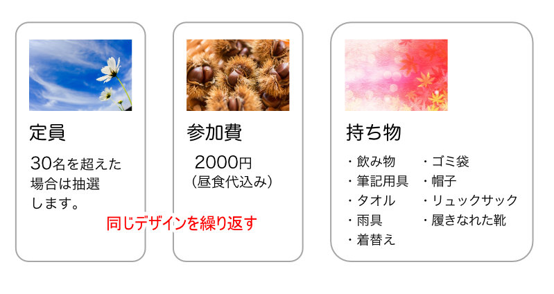 ひとつずつ分けて横に並べると、目の動きが少なくなって読みやすいです。