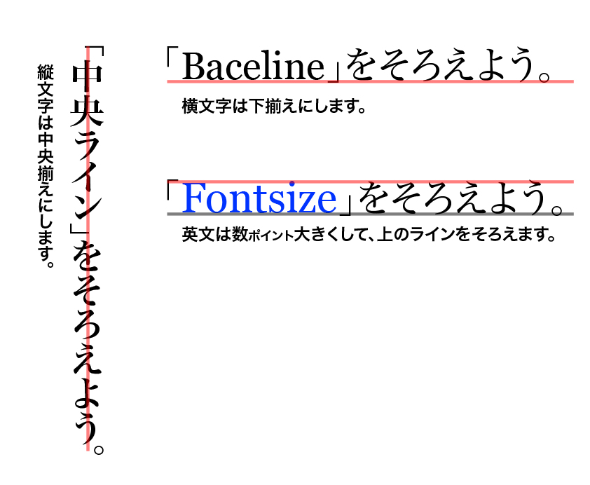 横書き文字はベースラインをそろえます。