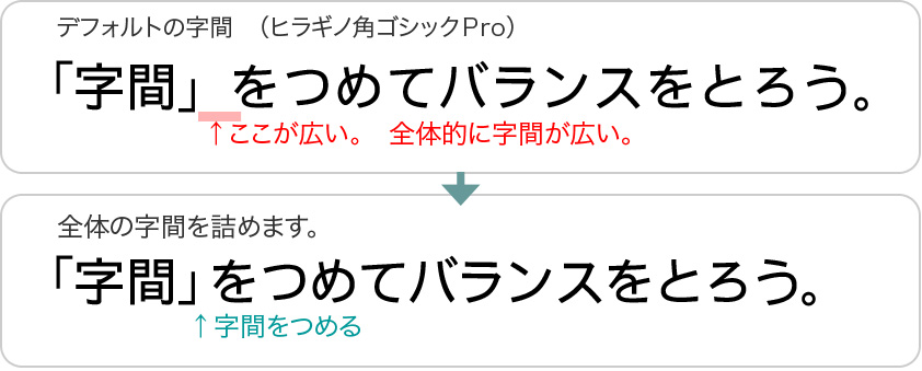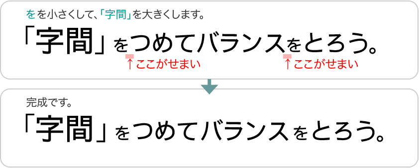 バランスが良くなるように、字間をつめましょう。