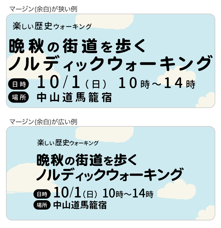 文字の周りは十分余白をつけます。