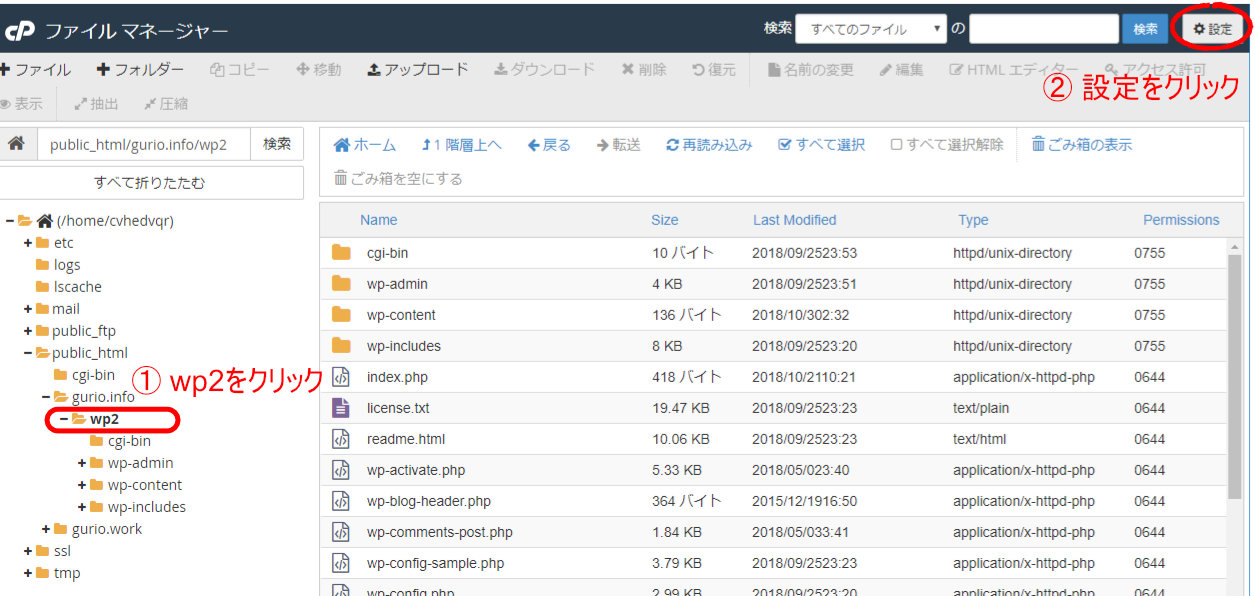 サブドメインなどでWordPressをインストールすると、wp2 などのフォルダに入れる必要があります。